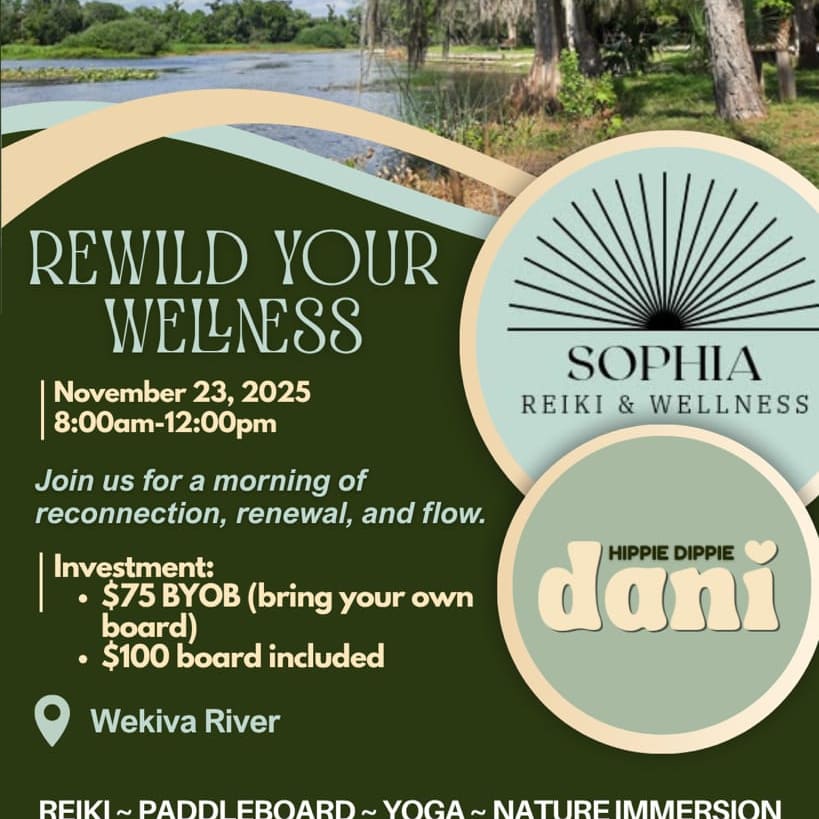 Welcome to Rewild Your Wellness- a unique retreat designed for Central Florida’s soulful seekers of natural well-being, community, and authentic self-care. Join natural wellness guides Dani and Sophia for a transformative morning of reconnection, renewal, and flow.